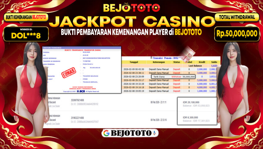 BEJOTOTO – Selamat kepada User id : DOL***8 Telah berhasil mendapatkan kemenangan besar pada permainan  LIVE CASINO MANIA INDONESIAN SPEED BACCARAT Dengan kemenangan Sebesar Rp.50,000,000,-. Setelah mengisi formulir withdraw dengan kurung waktu hanya 5 – 10 menit pihak BEJOTOTO sudah melakukan transfer kepada pemilik Userid dan dana sudah dapat di cairkan oleh pemenang. Bukti pembayaran yang kami berikan merupakan bukti pembayaran yang SAH / VALID yang langung di dapatkan melaui tanda transfer transaksi dari Bank yang di tuju.