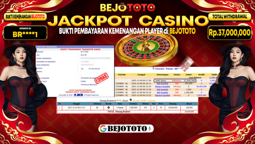 BEJOTOTO – Selamat kepada User id : BR****1 Telah berhasil mendapatkan kemenangan besar pada permainan  LIVE CASINO ROULETTE GAMES  Dengan kemenangan Sebesar Rp.37,000,000,-. Setelah mengisi formulir withdraw dengan kurung waktu hanya 5 – 10 menit pihak BEJOTOTO sudah melakukan transfer kepada pemilik Userid dan dana sudah dapat di cairkan oleh pemenang. Bukti pembayaran yang kami berikan merupakan bukti pembayaran yang SAH / VALID yang langung di dapatkan melaui tanda transfer transaksi dari Bank yang di tuju.