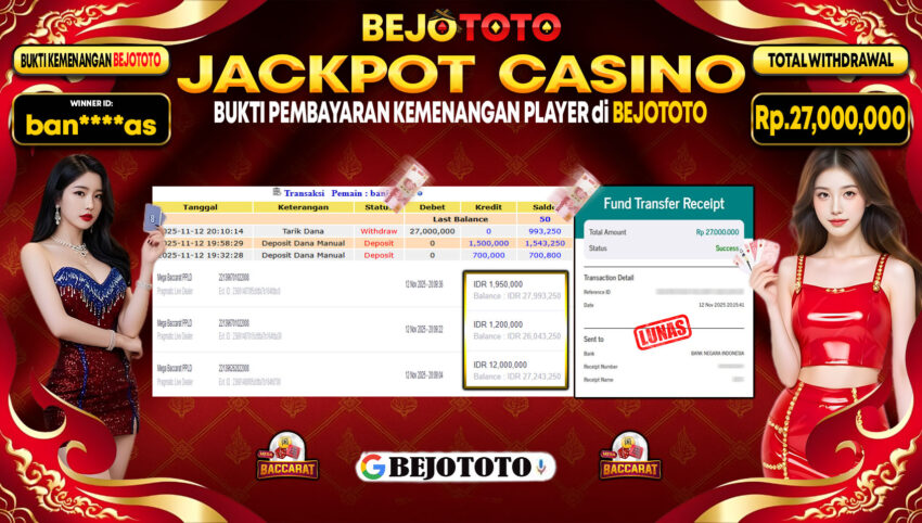 BEJOTOTO – Selamat kepada User id : ban****as Telah berhasil mendapatkan kemenangan besar pada permainan  LIVE CASINO ROULETTE  Dengan kemenangan Sebesar Rp.27,000,000,-. Setelah mengisi formulir withdraw dengan kurung waktu hanya 5 – 10 menit pihak BEJOTOTO sudah melakukan transfer kepada pemilik Userid dan dana sudah dapat di cairkan oleh pemenang. Bukti pembayaran yang kami berikan merupakan bukti pembayaran yang SAH / VALID yang langung di dapatkan melaui tanda transfer transaksi dari Bank yang di tuju.