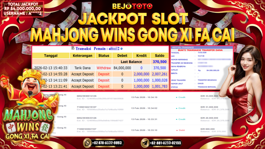 BEJOTOTO JACKPOT PRAGMATIC MAHJONG WINS – GONG XI FA CAI Rp.84,000,000,- LUNAS!!