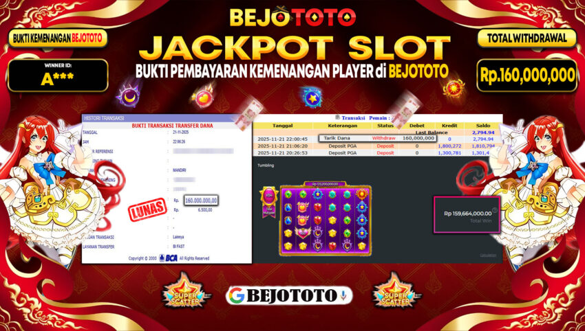 BEJOTOTO – Selamat kepada User id : A*** Telah berhasil mendapatkan kemenangan besar pada permainan  SLOT PRAGMATIC PRAGMATIC STARLIGHT PRINCESS SUPER SCATTER  Dengan kemenangan Sebesar Rp.160,000,000,-. Setelah mengisi formulir withdraw dengan kurung waktu hanya 5 – 10 menit pihak BEJOTOTO sudah melakukan transfer kepada pemilik Userid dan dana sudah dapat di cairkan oleh pemenang. Bukti pembayaran yang kami berikan merupakan bukti pembayaran yang SAH / VALID yang langung di dapatkan melaui tanda transfer transaksi dari Bank yang di tuju.