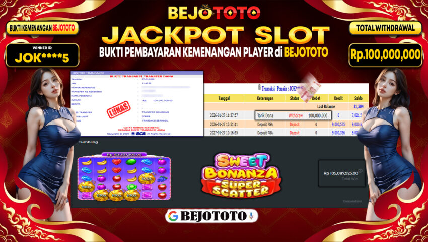 BEJOTOTO – Selamat kepada User id : JOK****5 Telah berhasil mendapatkan kemenangan besar pada permainan  SLOT PRAGMATIC PRAGMATIC SWEET BONANZA SUPER SCATTER Dengan kemenangan Sebesar Rp.100,000,000,-. Setelah mengisi formulir withdraw dengan kurung waktu hanya 5 – 10 menit pihak BEJOTOTO sudah melakukan transfer kepada pemilik Userid dan dana sudah dapat di cairkan oleh pemenang. Bukti pembayaran yang kami berikan merupakan bukti pembayaran yang SAH / VALID yang langung di dapatkan melaui tanda transfer transaksi dari Bank yang di tuju.
