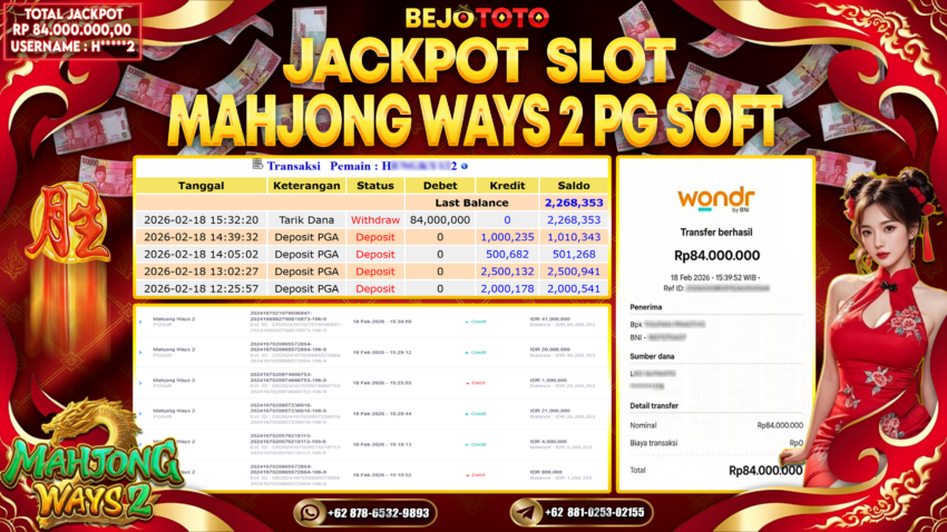 BEJOTOTO – Selamat kepada User id : H*****2 Telah berhasil mendapatkan kemenangan besar pada permainan SLOT MAHJONG WAYS-2 Dengan kemenangan Sebesar Rp.84,000,000-. Setelah mengisi formulir withdraw dengan kurung waktu hanya 5 – 10 menit pihak BEJOTOTO sudah melakukan transfer kepada pemilik Userid dan dana sudah dapat di cairkan oleh pemenang. Bukti pembayaran yang kami berikan merupakan bukti pembayaran yang SAH / VALID yang langung di dapatkan melaui tanda transfer transaksi dari Bank yang di tuju.