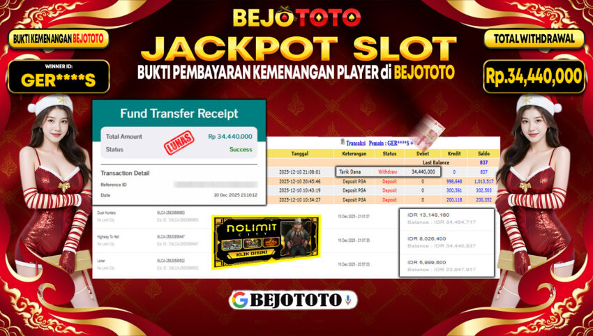 BEJOTOTO – Selamat kepada User id : GER****S Telah berhasil mendapatkan kemenangan besar pada permainan  SLOT NO LIMIT CITY DUCK HUNTERS  Dengan kemenangan Sebesar Rp.34,440,000,-. Setelah mengisi formulir withdraw dengan kurung waktu hanya 5 – 10 menit pihak BEJOTOTO sudah melakukan transfer kepada pemilik Userid dan dana sudah dapat di cairkan oleh pemenang. Bukti pembayaran yang kami berikan merupakan bukti pembayaran yang SAH / VALID yang langung di dapatkan melaui tanda transfer transaksi dari Bank yang di tuju.