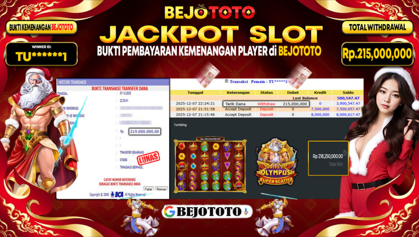 BEJOTOTO – Selamat kepada User id : TU******1 Telah berhasil mendapatkan kemenangan besar pada permainan SLOT PRAGMATIC GATES OF OLYMPUS SUPER SCATTER Dengan kemenangan Sebesar Rp.215,000,000,-. Setelah mengisi formulir withdraw dengan kurung waktu hanya 5 – 10 menit pihak BEJOTOTO sudah melakukan transfer kepada pemilik Userid dan dana sudah dapat di cairkan oleh pemenang. Bukti pembayaran yang kami berikan merupakan bukti pembayaran yang SAH / VALID yang langung di dapatkan melaui tanda transfer transaksi dari Bank yang di tuju.