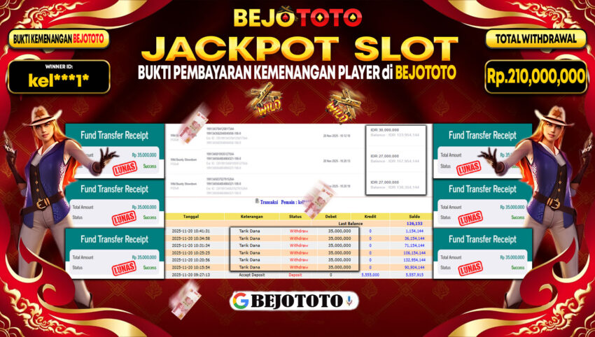 BEJOTOTO – Selamat kepada User id : kel***1* Telah berhasil mendapatkan kemenangan besar pada permainan  WILD BOUNTY SHOWDOWN Dengan kemenangan Sebesar Rp.210,000,000-. Setelah mengisi formulir withdraw dengan kurung waktu hanya 5 – 10 menit pihak BEJOTOTO sudah melakukan transfer kepada pemilik Userid dan dana sudah dapat di cairkan oleh pemenang. Bukti pembayaran yang kami berikan merupakan bukti pembayaran yang SAH / VALID yang langung di dapatkan melaui tanda transfer transaksi dari Bank yang di tuju.