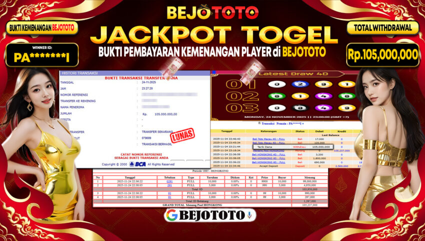 BEJOTOTO JACKPOT TOGEL HONGKONG LOTTO Rp.105,000,000,- LUNAS!!